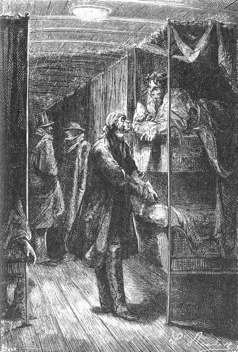Son parti pris, il s’embarqua aussitôt sur le General-Grant. Il était à bord, quand Mr. Fogg et Mrs. Aouda y arrivèrent. À son extrême surprise, il reconnut Passepartout sous son costume de héraut. Il se cacha aussitôt dans sa cabine, afin d’éviter une explication qui pouvait tout compromettre, — et, grâce au nombre des passagers, il comptait bien n’être point aperçu de son ennemi, lorsque ce jour-là précisément il se trouva face à face avec lui sur l’avant du navire.