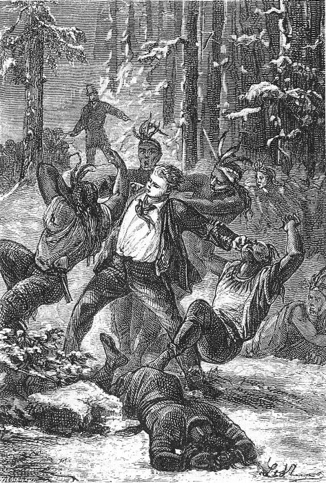Il y avait eu combat à dix milles au sud de Kearney. Peu d’instants avant l’arrivée du détachement, Passepartout et ses deux compagnons luttaient déjà contre leurs gardiens, et le Français en avait assommé trois à coups de poing, quand son maître et les soldats se précipitèrent à leur secours.